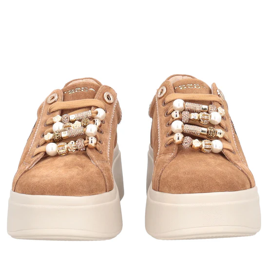 Sneaker Dazzling in suede con charm colore cuoio aggiungono una nota raffinata al tuo stile quotidiano.